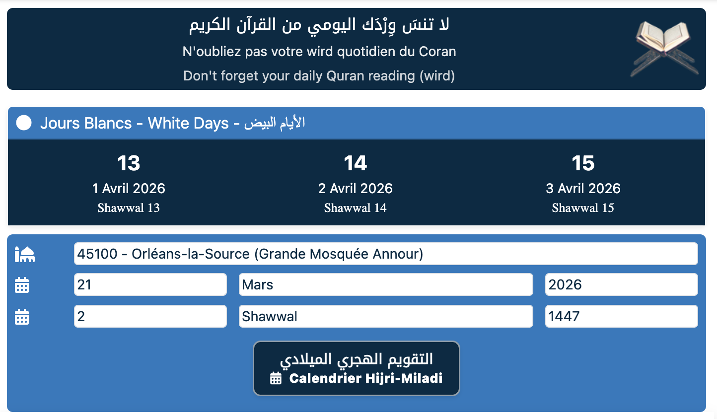«Les Jours Blancs sont le 13, le 14 et le 15 du mois (hijri). Jeûner trois jours par mois est une Sunna, et les meilleurs de ces trois jours sont les Jours Blancs.»